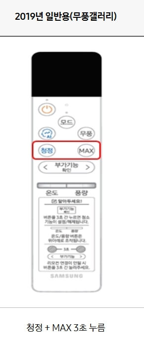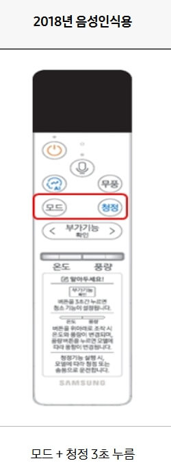 - 리모컨에서 모드 버튼과 청소 버튼을 동시에 3초 이상 눌러주세요.