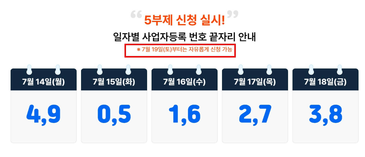 - 사업자등록번호 끝자리 5부제 운영 (각 날짜별 끝자리 0~9 지정)