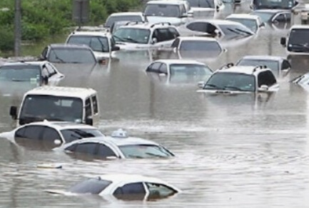 - 하천변, 지하주차장, 도로 낮은 곳은 침수 시 차량 전손 가능성 높음