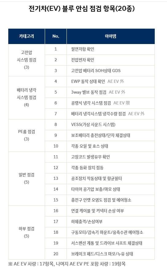 - 점검 항목 및 정책은 현대차 본사 방침에 따라 변경될 수 있음